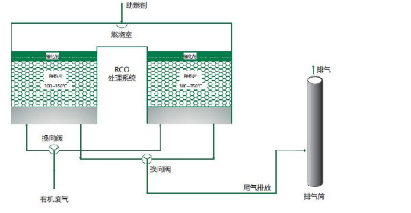 有機廢氣經(jīng)過催化燃燒的反應(yīng)產(chǎn)物一般是CO2和H2O,此類成分在催化劑吸附載體內(nèi)吸附容量小,易于脫附。脫附后,催化劑載體重新恢復(fù)吸附性能。在反應(yīng)過程中,吸附-催化燃燒-脫附持續(xù)進行,實現(xiàn)廢氣的凈化和排放。一般反應(yīng)尾氣有較高的溫度,會通過換熱器或熱空氣循環(huán)裝置將熱量用于預(yù)熱進氣、或維持反應(yīng)艙室的溫度。