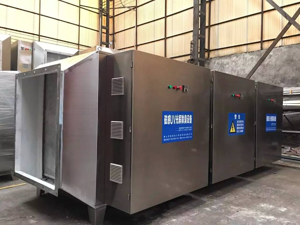 UV光解氧化廢氣凈化裝置采用高強(qiáng)度納米紫外線破壞、分解大分子鏈為小分子鏈,再利用臭氧和烴基自由基、催化劑進(jìn)行催化氧化,使有機(jī)物變?yōu)槎趸己退?/div>