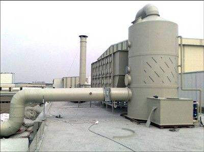 中央廢氣處理系統(tǒng)的核心設備是一種采用水洗式的洗滌塔 ,它的主要功能是通過控制洗滌塔中水的酸堿度、電導度等參數(shù),在廢氣與水交叉流過時使廢氣在洗滌塔中與水進行充分接觸,吸收其中的酸性或堿性物質(zhì)。洗滌塔內(nèi)安裝有填料床,用于增大廢氣與水的接觸面積,延長接觸時間。填料床下面是循環(huán)水池,通過循環(huán)水泵使液體不停的循環(huán)。還設有加藥泵、pH計用于控制 pH值;液位計、電導度計用于排水和補水控制 ;壓差開關、壓力傳感器用于監(jiān)控系統(tǒng)的運行情況。
